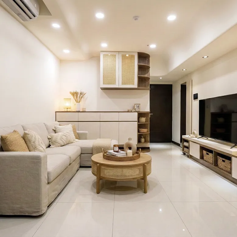 這間13 坪兩房小宅,以溫潤木質、編織元素與採光玻璃隔間,梳理出輕柔的北歐氛圍。全案導入 CNC 精準預作工法,讓天花板弧線與櫃體收邊更臻完美。從隱藏式收納床架到生活家電櫃,每一寸空間都經過縝密計算